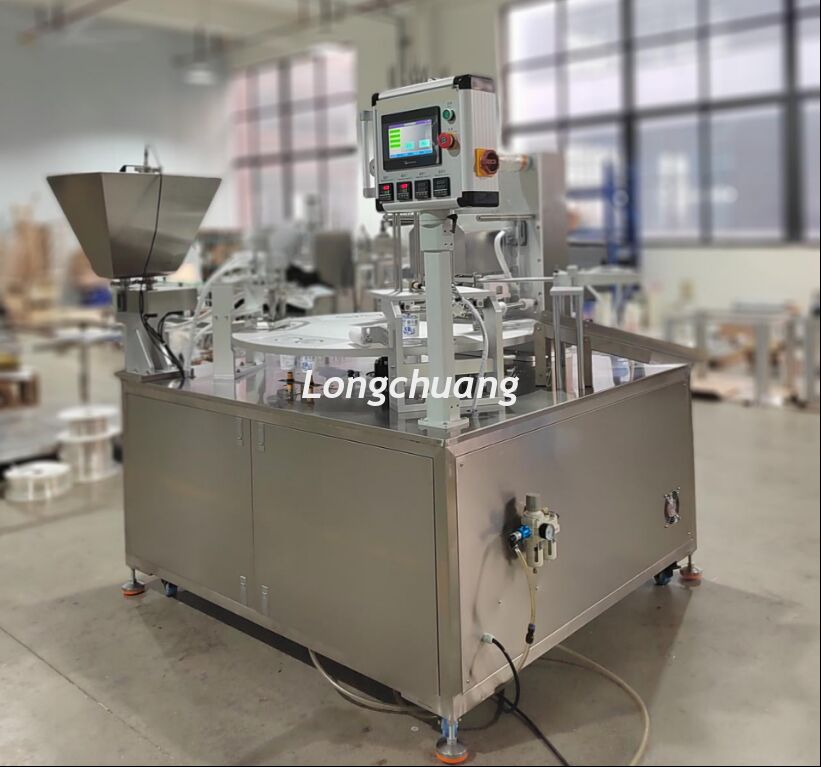 LC-672CF W pełni Automatyczna Maszyna do Napełniania i Zamykania Dysków PróżniowychTa maszyna to w pełni automatyczna maszyna do napełniania i zamykania dysków, opracowana zgodnie z wymaganiami klienta. Może być wyposażona w rozkładarkę butelek lub myjkę do butelek na końcu przednim, a także w zakręcarkę i etykieciarkę na końcu tylnym, tworząc linię produkcyjną, która nie wymaga ręcznej obsługi, oszczędzając siłę roboczą i zwiększając wydajność produkcji.Folia zamykająca może być folią w rolce lub folią w arkuszach, obie opcje są dostępne. Automatycznie upuszcza kubki, automatycznie je zgrzewa, pozostawia sygnał kodowania i automatycznie transportuje kubki na zewnątrz, oszczędzając siłę roboczą. Może zamykać cztery lub więcej kubków na raz, z ilością wybieraną według potrzeb, znacznie zwiększając wydajność produkcji.